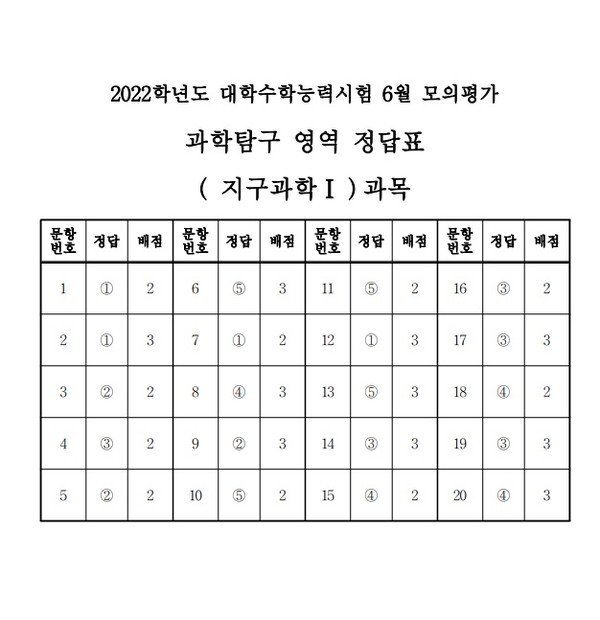 한국교육과정평가원 제11대 강태중 원장 취임 ; 시험일은 6월 3일 (목), 성적통지는 6월 30일 (수)입니다. 공지사항 2022학년도 대학수학능력시험 6월 모의평가 시행 보도자료 2022학년도 대학수학능력시험 6월 모의평가 시행 보도자료입니다. 2020년 시행하는 모의고사 시험지 & 답지 자료입니다. 2019년 고3 6월 모의고사 영어영역 문제지 및 답지